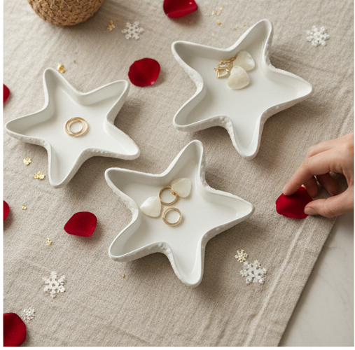 star tray6Handmade White Ceramic Starfish Tray | Coastal Jewelry Organizer & Bathroom Decor | Pack of 1