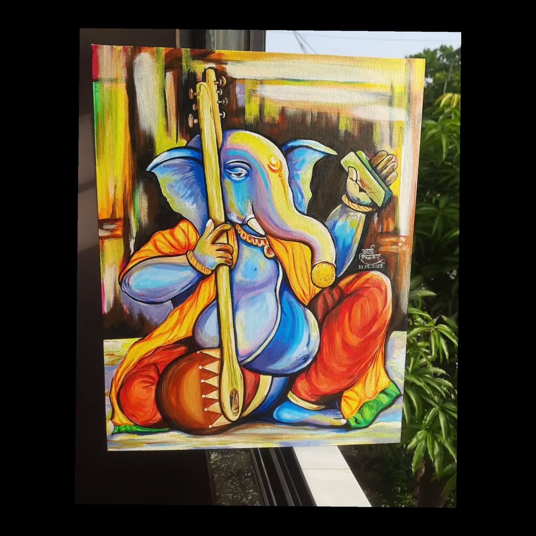 The Divine Musician: Original Hand-Painted Ganesha Art