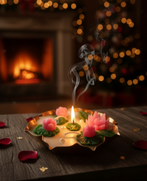 💖 Bring the Bloom of Elegance Home – Order Your Lotus Urli Candle Set Today!