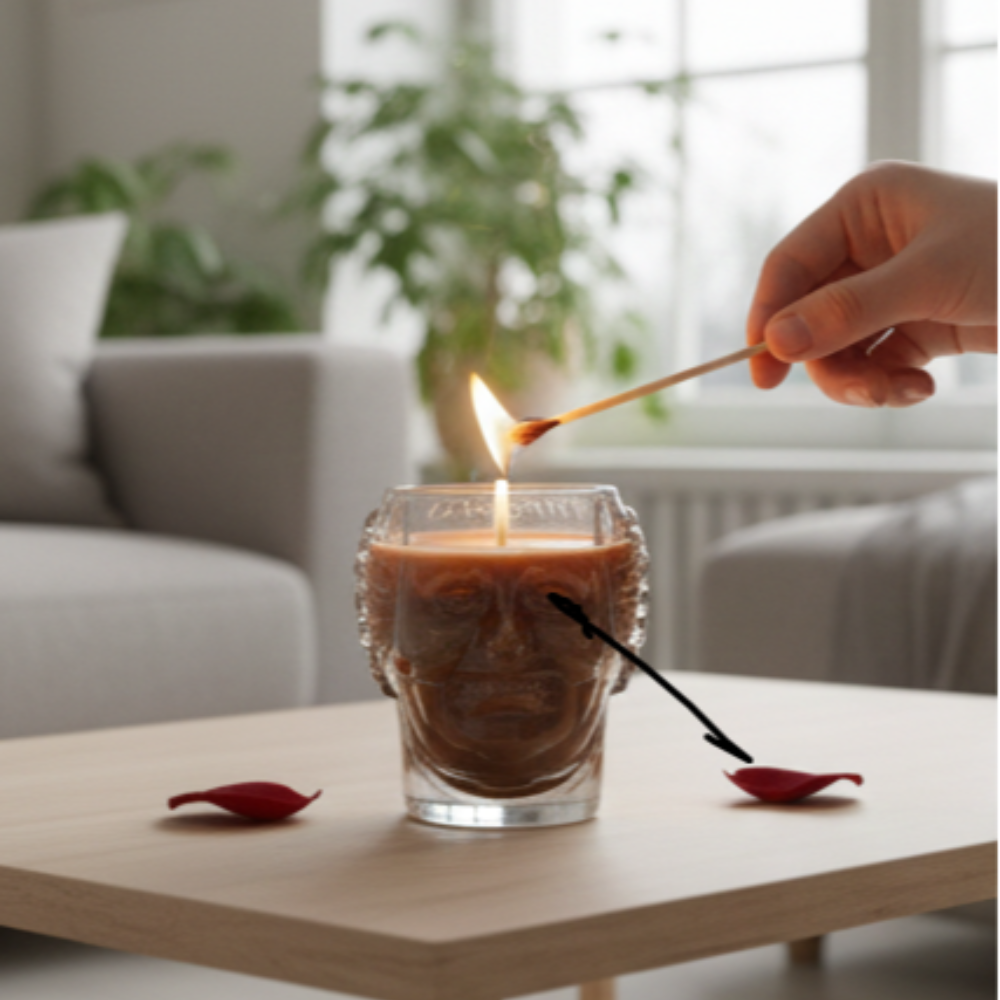 🥃 Illuminate Your Curiosity – Order Your Sculpted Visage Candle Today!