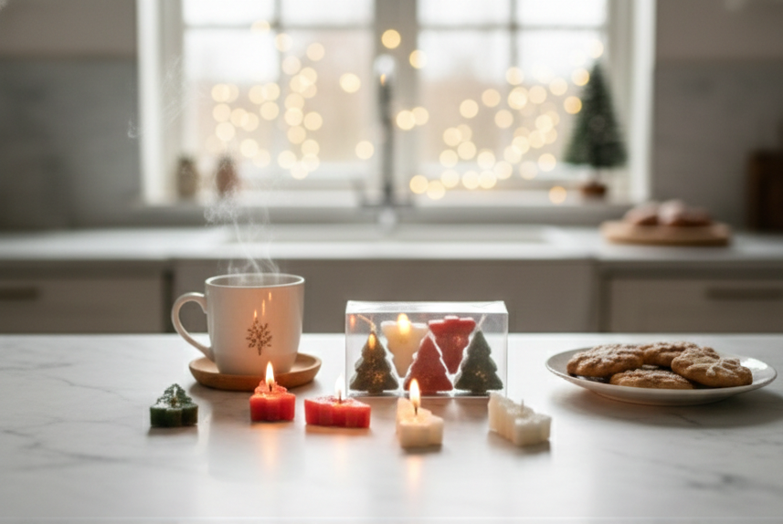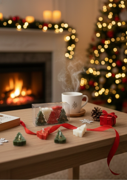 Celebrate the magic of the holidays with our adorable Christmas Tree Tealight Candle Set! Each tiny candle is carefully molded into the shape of a miniature pine tree, featuring festive colors (classic red, forest green, snow white, and soft pink) often lightly dusted with sparkling gold glitter. Presented beautifully in clear, gift-ready boxes, these tealights are the perfect accent for your holiday table or a charming token for loved ones.