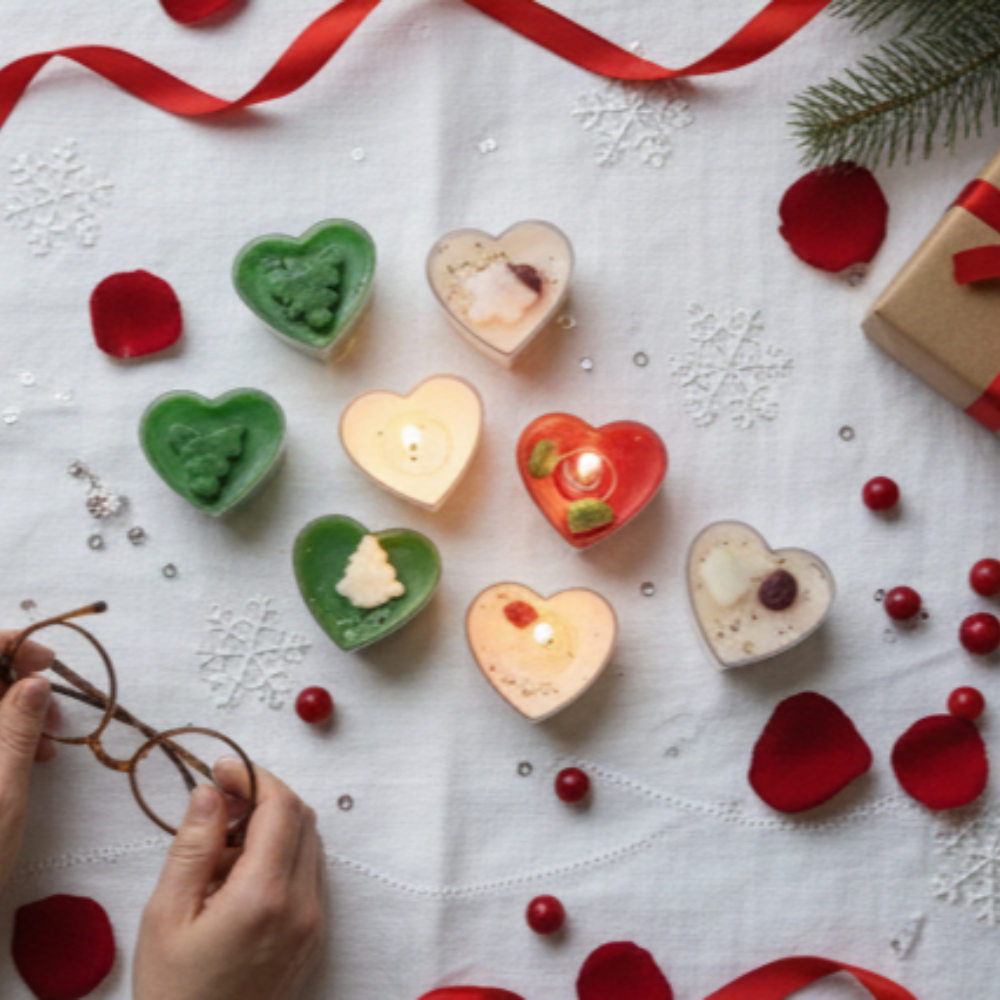 Add a touch of warmth and romance to your winter decor with our beautiful Heart-Shaped Festive Tealight Set. These aren’t just for Valentine’s Day! Crafted in a classic heart shape, each candle is uniquely accented with tiny Christmas tree embeds, winter berries, or sparkling glitter, making them the perfect blend of cozy love and holiday cheer. Light them to create an intimate, enchanting glow for any winter gathering.
