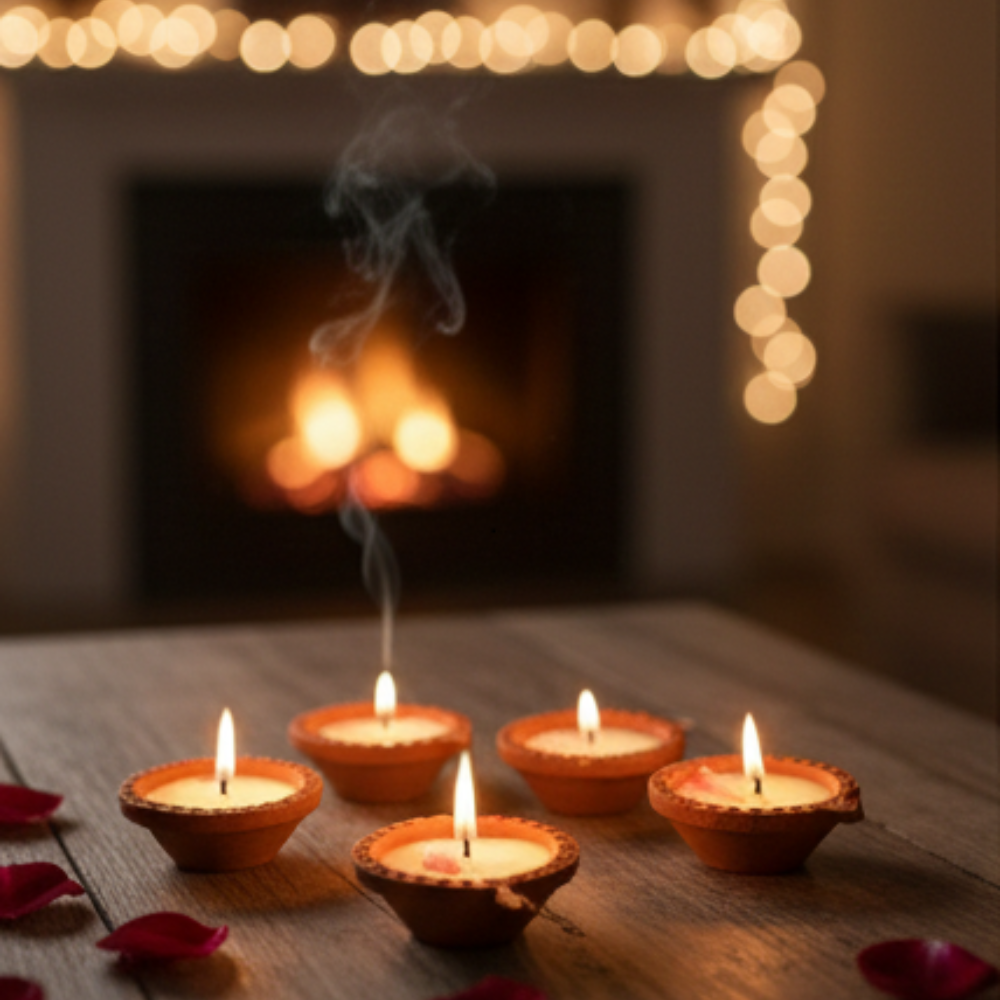 Material Authentic Natural Clay (Mitti) Eco-friendly, traditional, and creates a soft, warm glow.