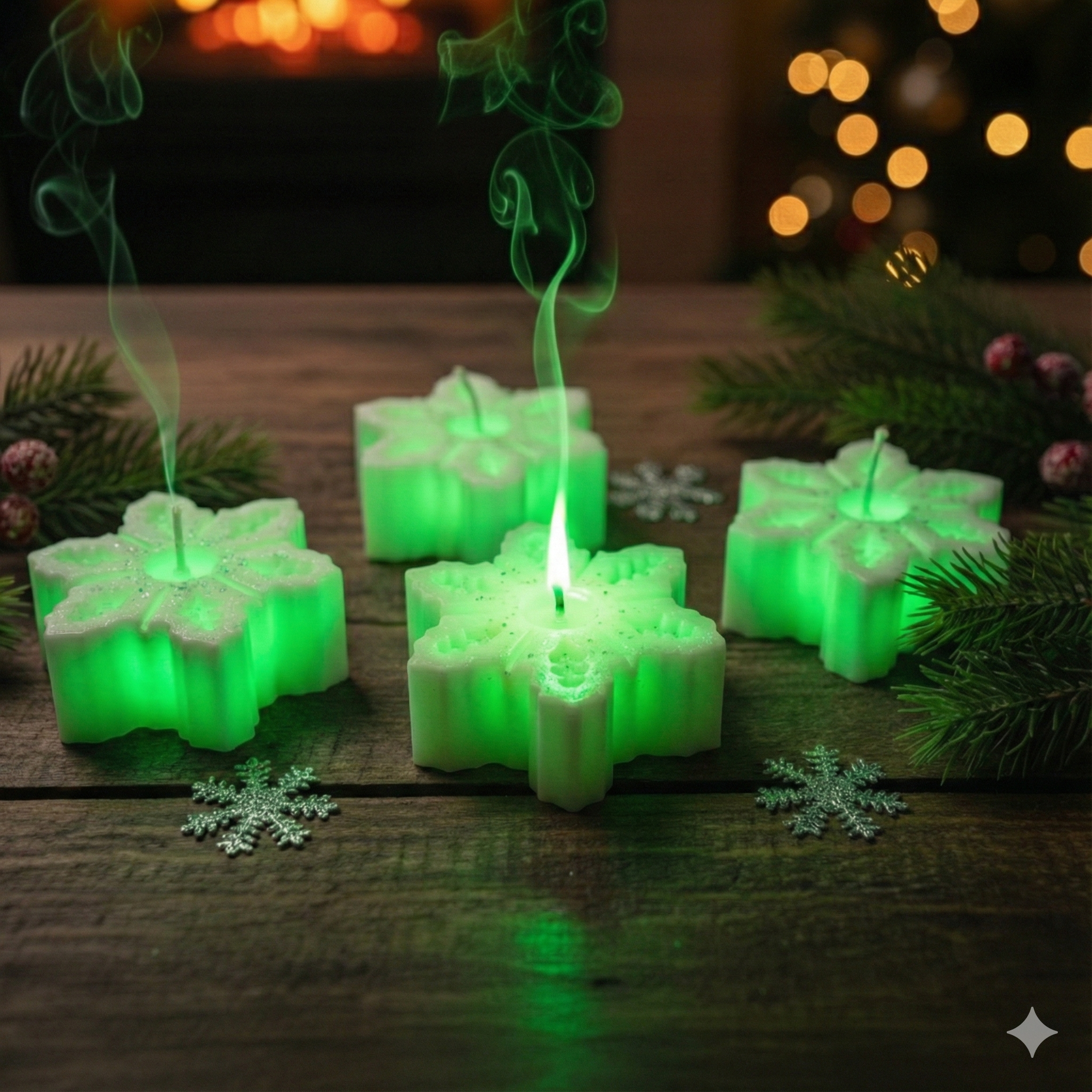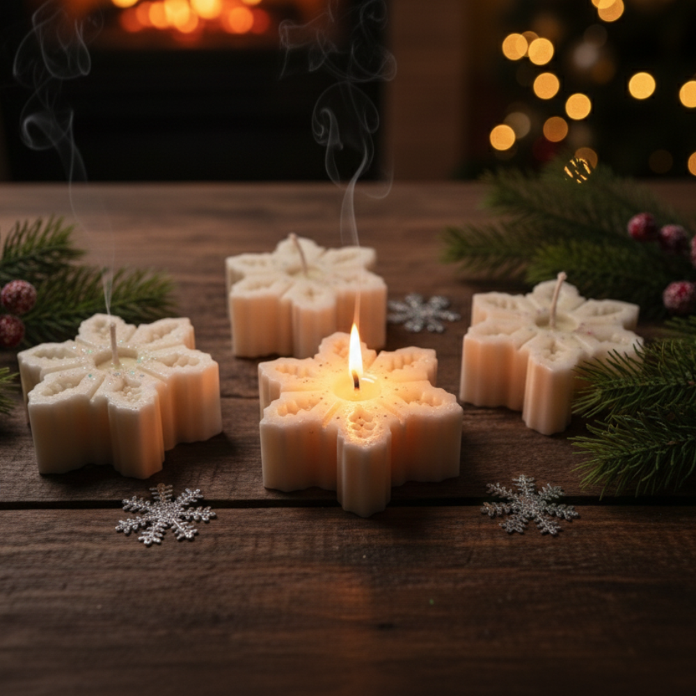 Create a truly unforgettable holiday atmosphere with our enchanting Glow-in-the-Dark Snowflake Candle Set. Each candle is intricately molded into a beautiful, detailed snowflake shape, evoking the quiet magic of a perfect winter snowstorm. The secret? These candles contain a safe, non-toxic pigment that absorbs light during the day and emits a subtle, mesmerizing glow when the flame is out and the room is dark!